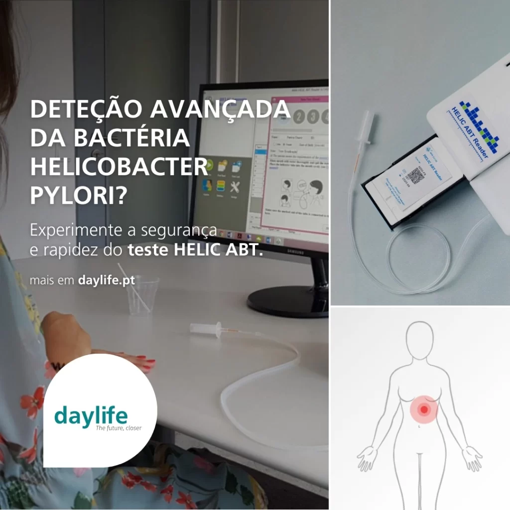 Na Daylife destacamos a importância da deteção precisa desta bactéria e apresentamos o 𝘁𝗲𝘀𝘁𝗲 𝗛𝗘𝗟𝗜𝗖 𝗔𝗕𝗧, uma solução avançada, não invasiva, para a deteção desta bactéria.